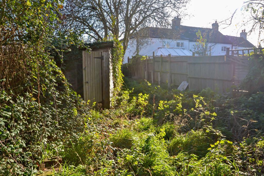 The flat has the advantage of its own garden and enclosed by fencing with timber garden shed and is presently overgrown.