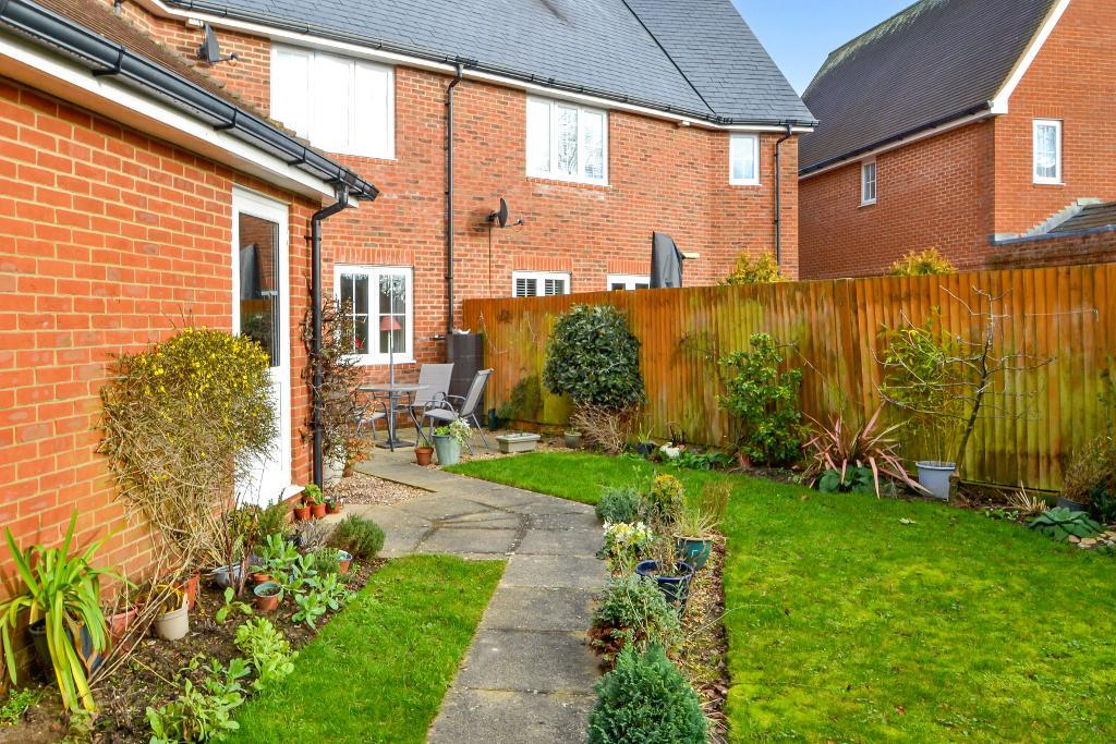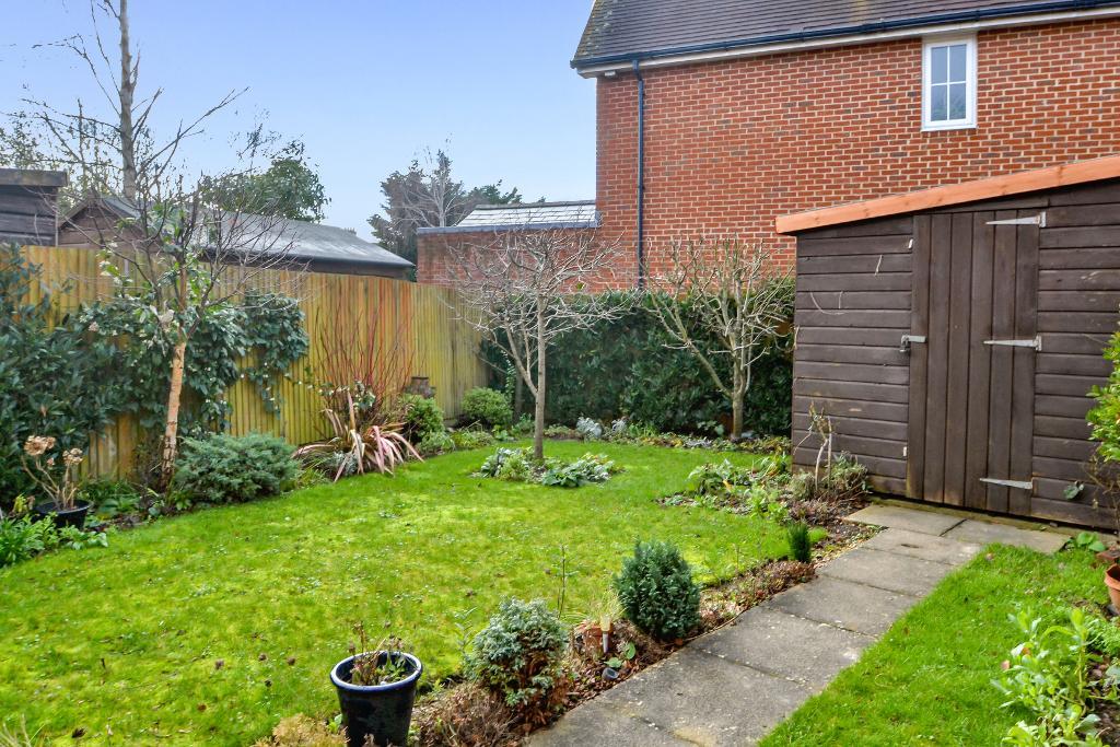 The garden is enclosed by fencing and walling. There is a paved patio area and paved pathways with remainder of the garden laid to lawn with established borders, timber garden shed, outside light, gate allows access to the front.