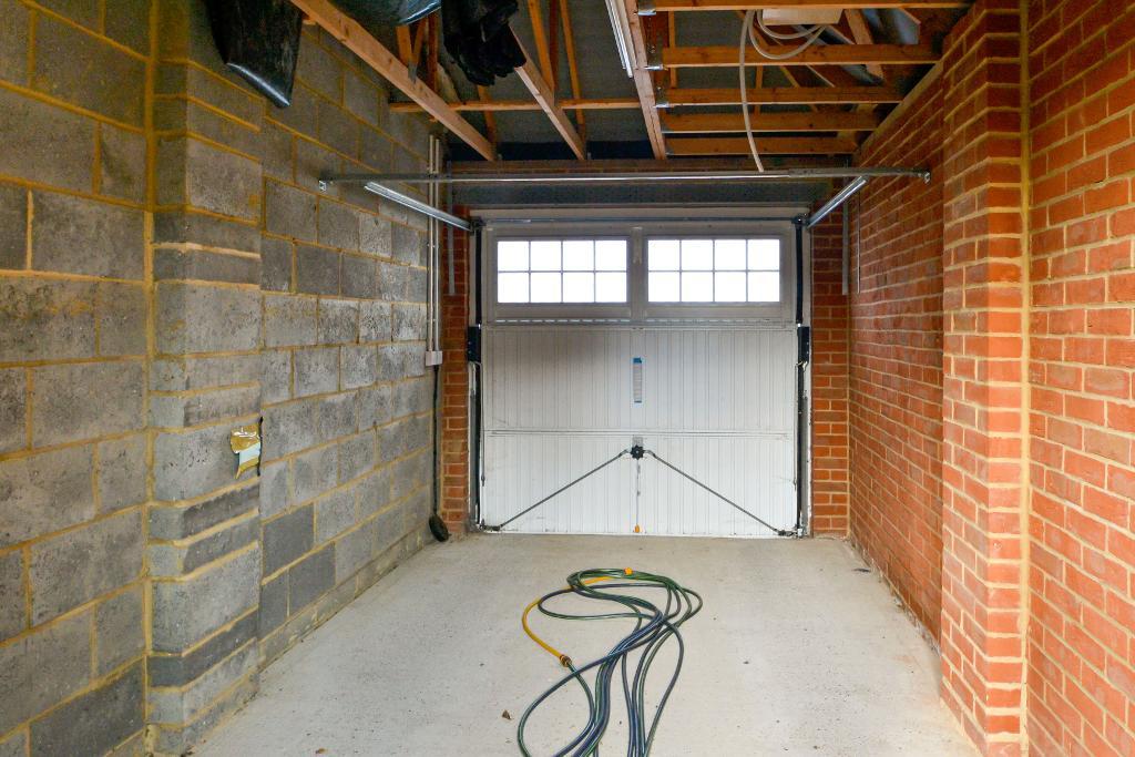 Attached garage with up and over door with electric light, and power and parking in front of garage.