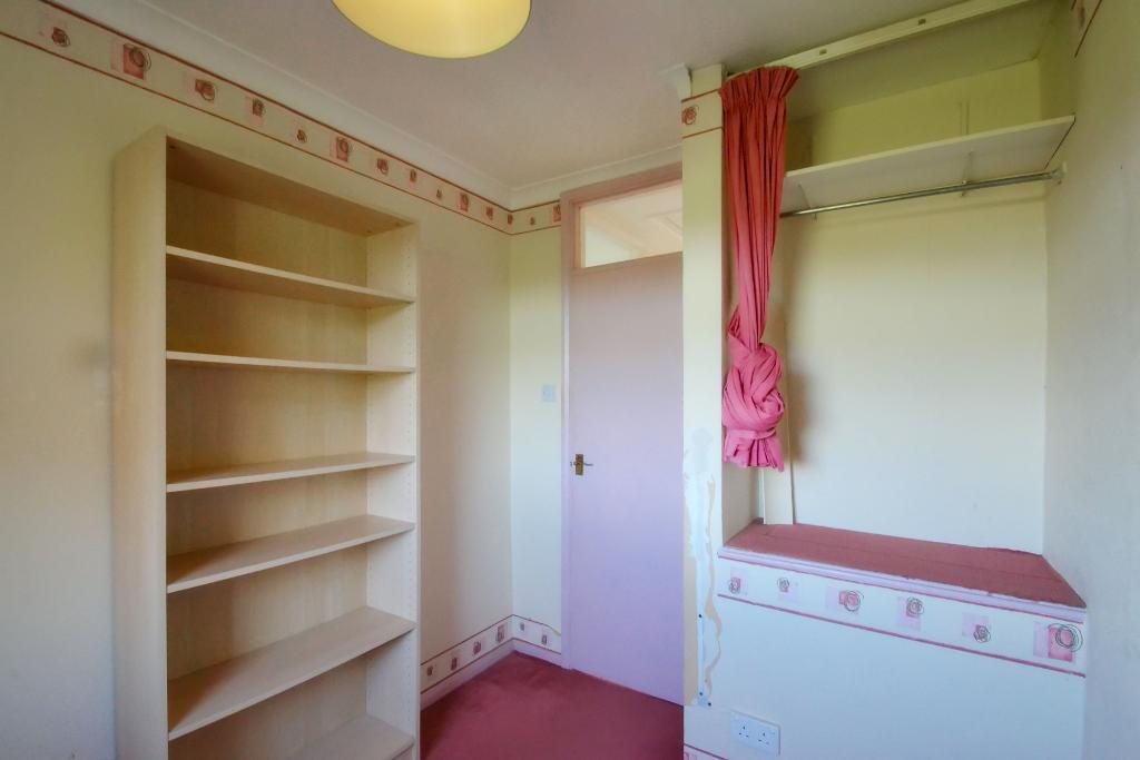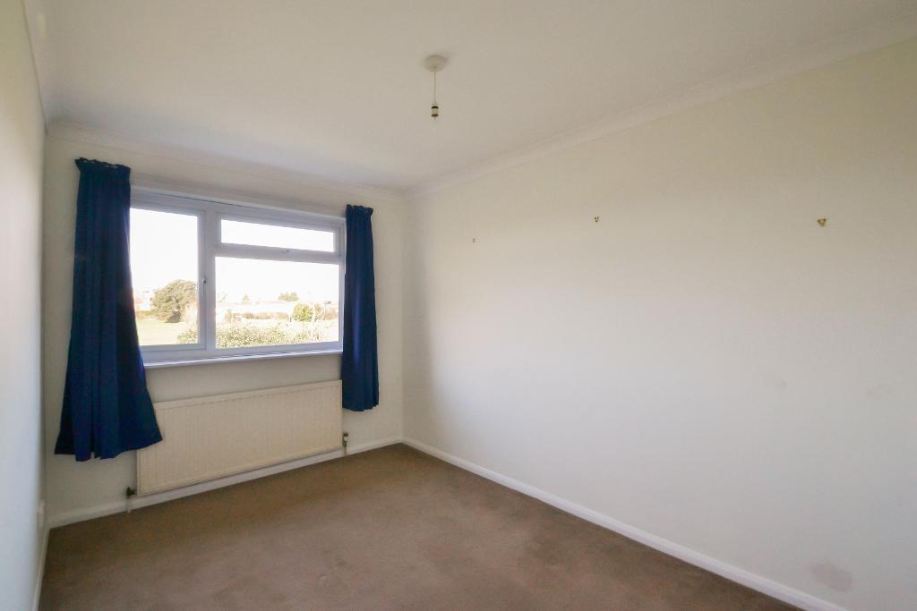 Recessed wardrobe cupboard, radiator, double glazed window with view over rear garden and fields.
