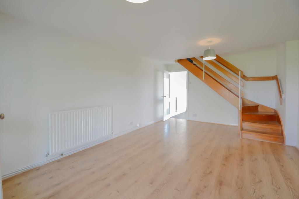 Double glazed window with front aspect and enjoying an outlook over an area of green. Wood effect flooring, radiator, understairs storage cupboard, TV aerial point, stairs to first floor.