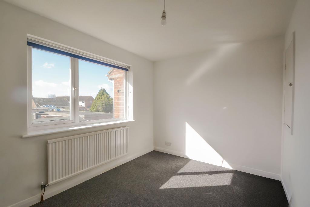 Double glazed window with view over rear garden, radiator, recessed shelved storage cupboard.